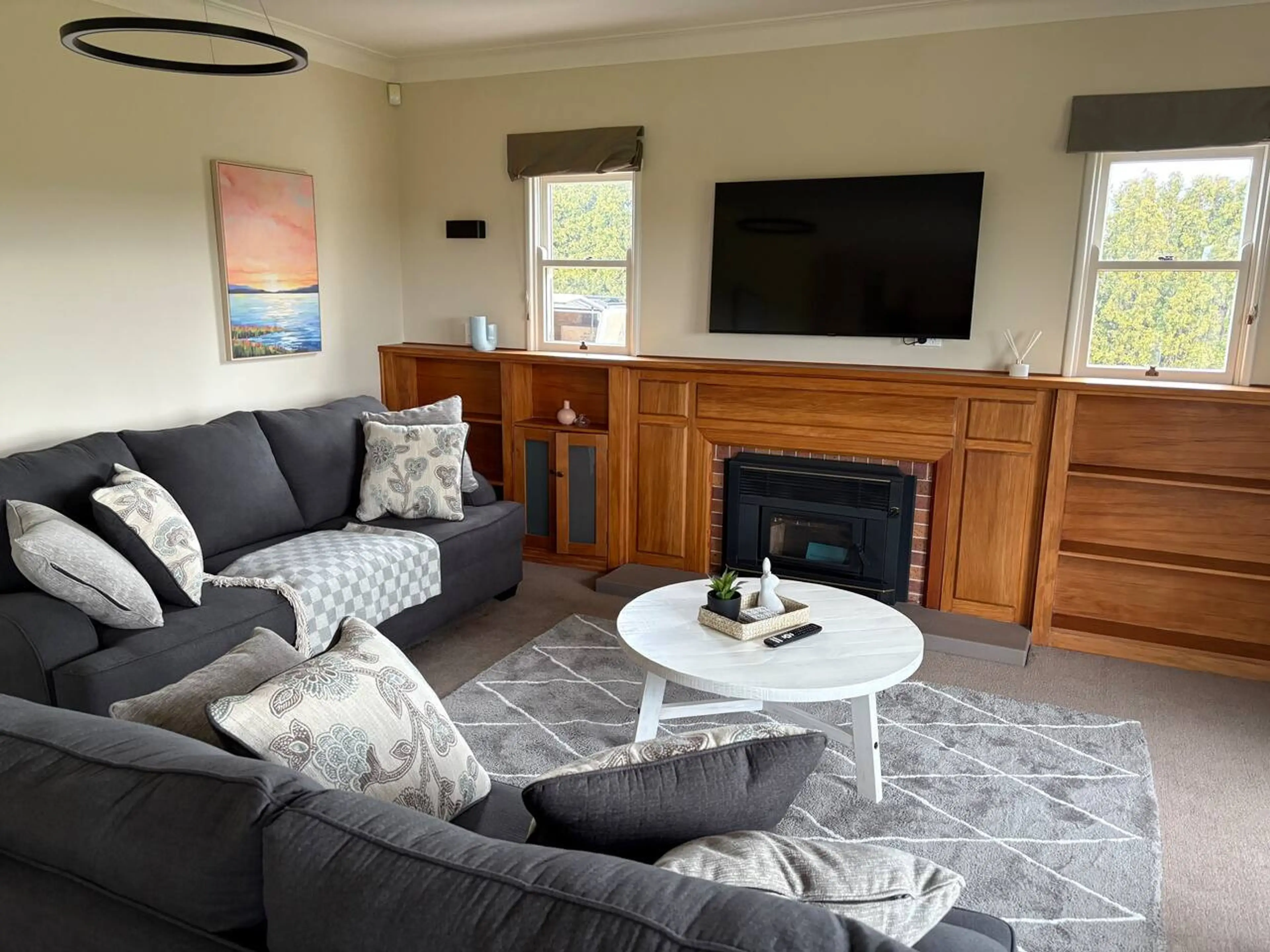 Stunning 5-bedroom, 2-bathroom home (266m) with modern, spacious, open-plan living, dining and kitchen. Abundant natural light and breathtaking views. Master ensuite features walk-in wardrobe. Double glazed, warm and comfortable, this truly will be a magic stay for you and your guests. Great indoor/...